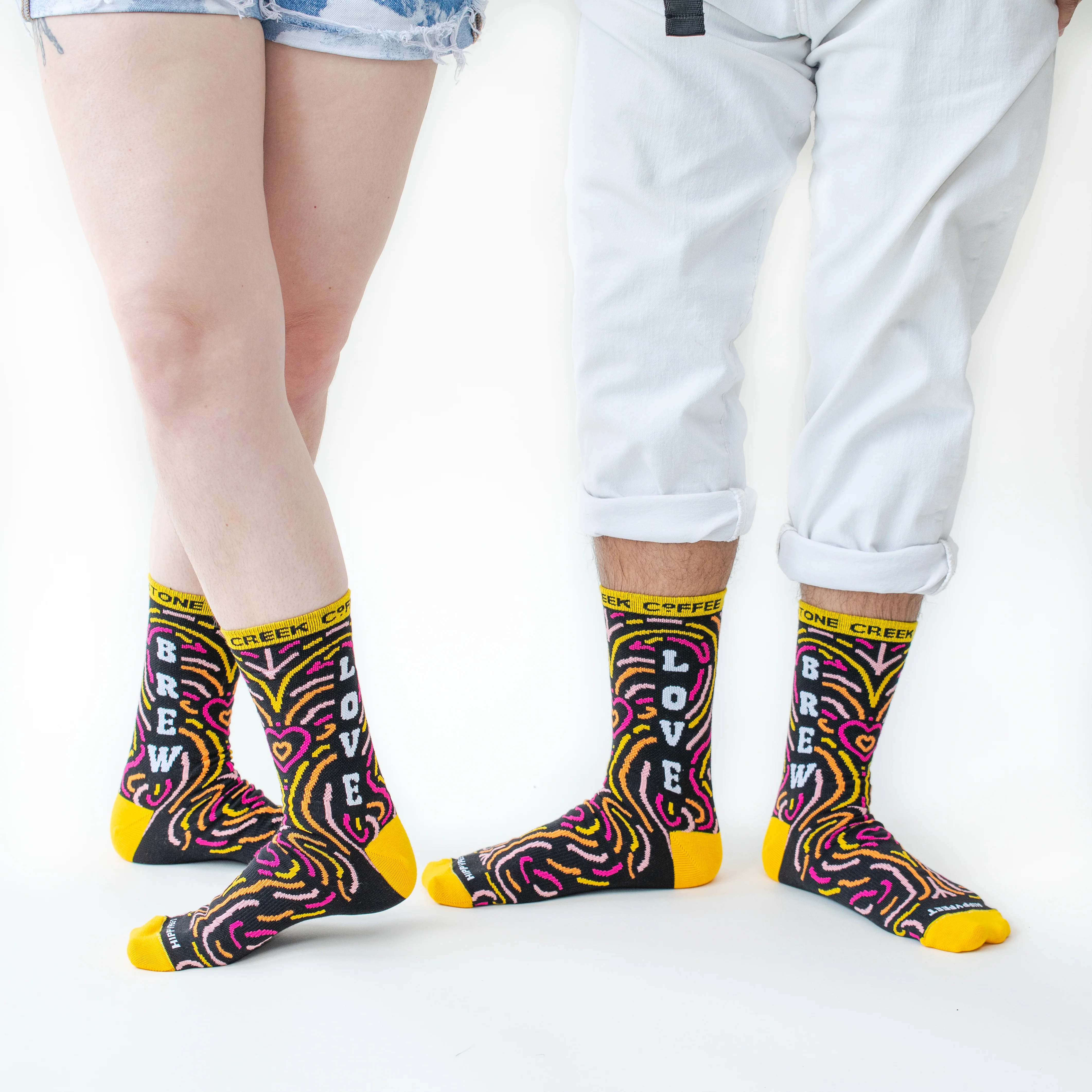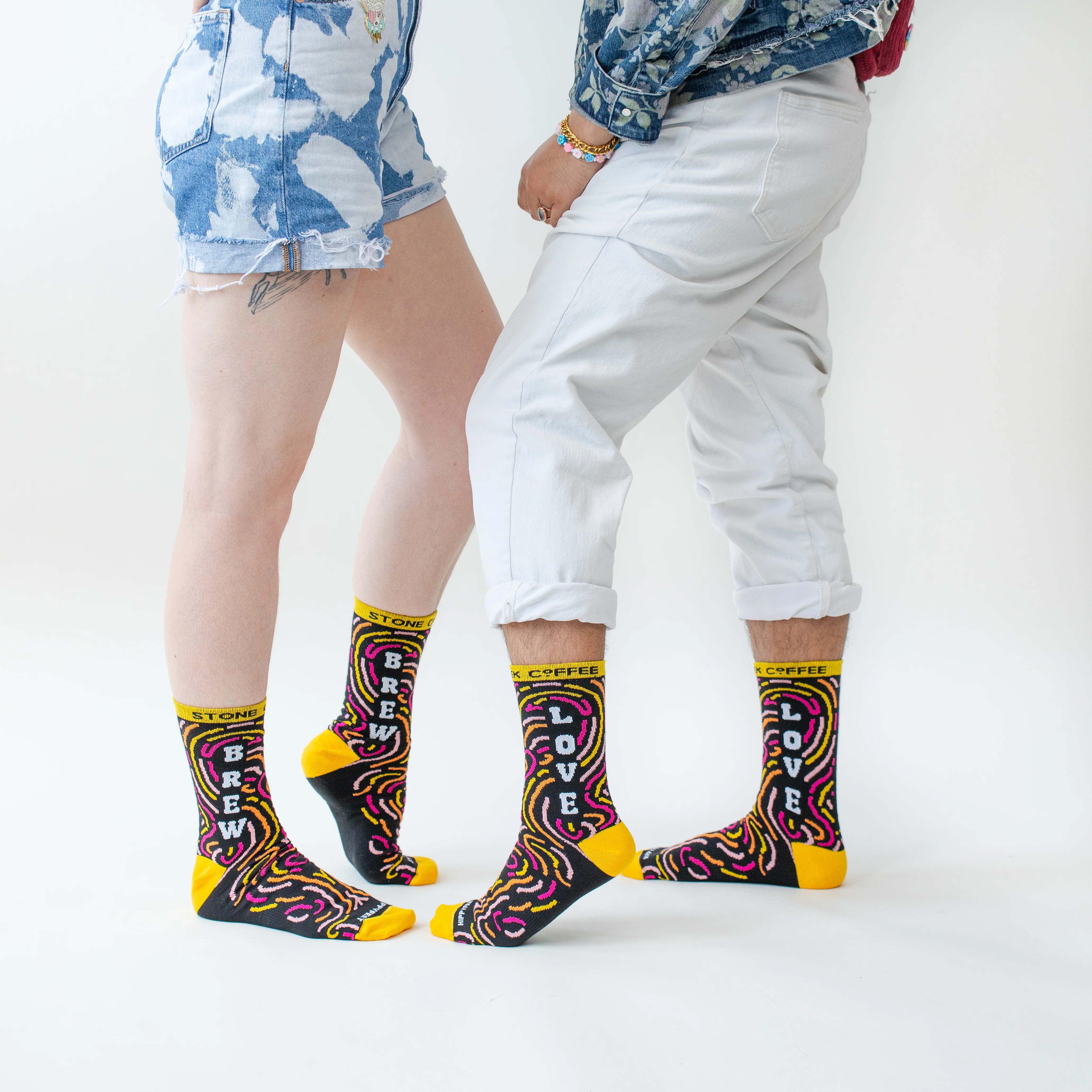 Brew love and inclusion with our Brew Love Crew Socks. Plus, you can feel good knowing that they manufactured these toe warmers using recycled material from t-shirt trimmings, giving a new life to textiles that were otherwise heading for a landfill. A win, win, if you ask us.Â