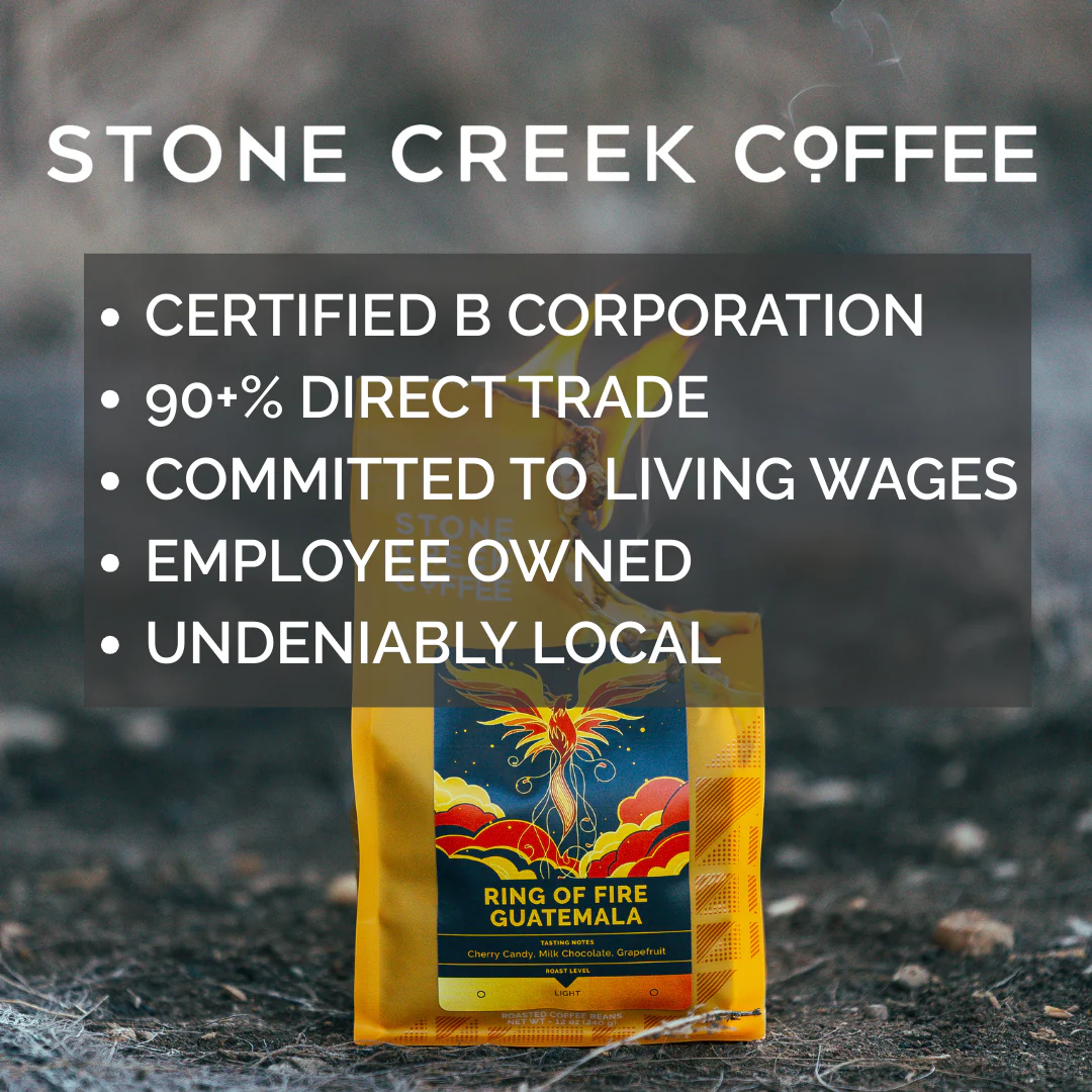 Grown on Guatemala’s volcanic slopes, Ring of Fire is a bold blend of Bourbon, Catuai, and Caturra—beans tough enough to thrive where the earth still smolders. This coffee roasts with deep sweetness and a rich, viscous body that lingers like a low, steady guitar riff. Born from the touch of fire and high altitude, Ring of Fire is light and smooth but never tame—accessible yet full of edge, just like the best Guatemalan coffee. It starts with a sip, then pulls you in.